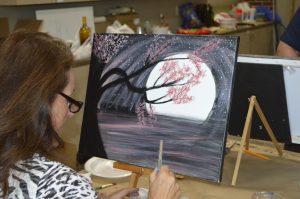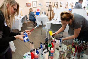 The most popular program for adults is Brews and Brushes, where participants sip on a favorite beverage while an artist guides the class to create their own version of a painting. For children 6 and older, Mini Masters classes help them create acrylic paintings of subjects kids enjoy, like animals.