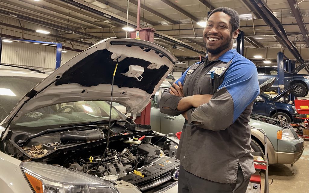After meeting his girlfriend and moving to Beaverton, Michigan, he enrolled in Mid Michigan College’s Automotive and Diesel Service program. After gaining critical hands-on experience at Mid, he was connected with Krapohl Ford & Lincoln and assigned a service technician as a mentor. He joined the service team in August 2021, has since completed his internship and continues his training.
