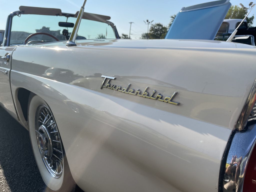 A classic Ford Thunderbird was part of the morning arrivals.