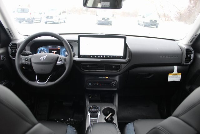 2025 Ford Bronco Sport Outer Banks DON'T MISS THIS ONE, MP3 PLAYER, GAS SAVER, GPS NAVIGATION, Bluetooth®, USB Ports, 110V/400W AC Power Outlet, 12 Speakers, 2nd Row Carpeted Seatback, 360-Degree Camera w/Trail & Split View, 4-Wheel Disc Brakes, ABS brakes, Air Conditioning, Alloy wheels, AM/FM radio: SiriusXM, AM/FM Stereo, Auto High-beam Headlights, Auto-dimming Rear-View mirror, Automatic temperature control, Auxiliary Switches & Wiring, B&O Sound System by Bang & Olufsen, Brake assist, Brush Guard, Cargo Management System (Shelf/Divider/Table), Class II Trailer Tow Pack w/Trailer Sway Control, Compass, Connected Navigation, Delay-off headlights, Driver door bin, Driver vanity mirror, Dual front impact airbags, Dual front side impact airbags, Electronic Stability Control, Emergency communication system: SYNC 4 911 Assist, Equipment Group 300A, Fender Tie Downs, Four wheel independent suspension, Front & Rear Black Bumpers, Front & Rear Floor Liners w/o Carpet Mats, Front anti-roll bar, Front Bucket Seats, Front Center Armrest, Front Driver/Passenger Seat Back Map Pockets, Front dual zone A/C, Front fog lights, Front Parking Sensors, Front reading lights, Fully automatic headlights, Garage door transmitter, HD Radio, Heated door mirrors, Heated front seats, Heated steering wheel, High Clearance Fender Flares, HOSS 2.0 Off-Road Suspension, Illuminated entry, Interior Grab Handle, Knee airbag, Low tire pressure warning, Memory seat, Occupant sensing airbag, Outer Banks Tech Package+, Outside temperature display, Overhead airbag, Overhead console, Panic alarm, Passenger door bin, Passenger vanity mirror, Power door mirrors, Power driver seat, Power Moonroof, Power passenger seat, Power steering, Power windows, Premium Trimmed Front Bucket Seats w/Ebony/Roast, Radio data system, Rain sensing wipers, Rear anti-roll bar, Rear Parking Sensors, Rear reading lights, Rear seat center armrest, Rear window defroster, Rear window wiper, Recovery Hooks, Remote keyless entry, Reverse Brake Assist, Sasquatch Outer Banks Package, Security system, SiriusXM, Speed control, Speed-sensing steering, Speed-Sensitive Wipers, Split folding rear seat, Steering wheel mounted audio controls, SYNC 4 w/Enhanced Voice Recognition, Tachometer, Telescoping steering wheel, Tilt steering wheel, Traction control, Trail Control for Off-Road, Trip computer, Variably intermittent wipers, Wheels: 17 Ebony Black-Painted Aluminum, Wheels: 18 Ebony Black-Painted Aluminum. 25/30 City/Highway MPG